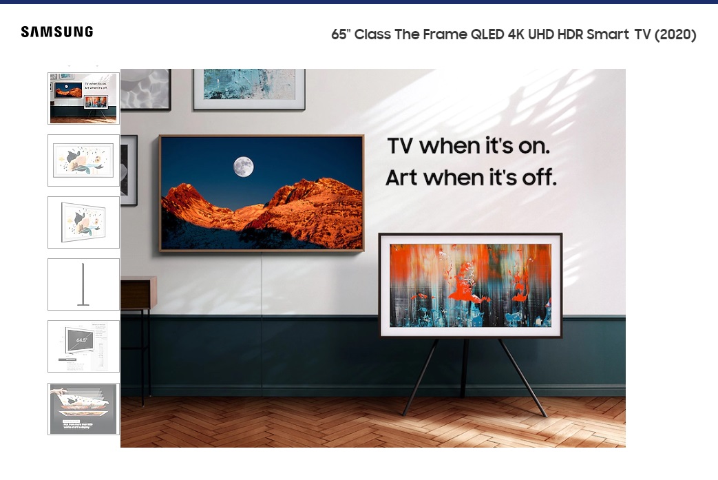 Samsung updated its phenomenal TV with its 65″ Frame. In addition, it showcases art when it is not in use thanks to its QLED screen.